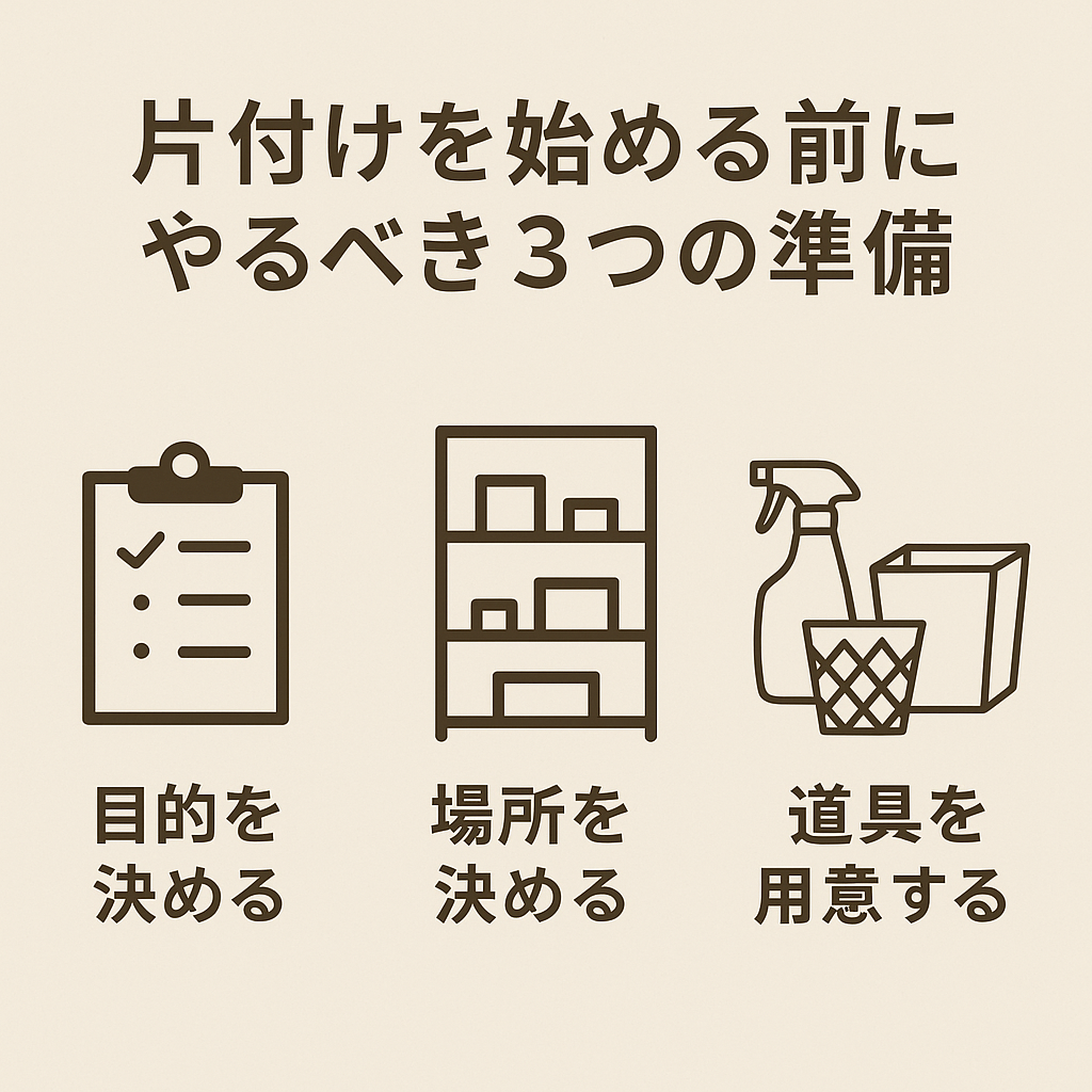 物が多い家では、やみくもに片付けを始めると途中で挫折しがちです。片付けとは「ものと向き合う作業」であり、気力・時間・判断力を必要とします。そのため、いきなり手を動かすよりも、まずは準備段階でしっかりと心の整理をしておくことが成功の鍵になります。準備段階では、「片付ける目的」「理想の暮らしのイメージ」「作業の優先順位」を明確にし、自分が何を得たいのかを具体的にイメージしましょう。たとえば「家族がくつろげるリビングにしたい」「毎朝スムーズに支度ができるようにしたい」など、目的が明確だと行動に一貫性が生まれます。また、感情的な判断を避けるために、「使っている・使っていない」「好き・嫌い」といった判断基準をあらかじめ設定しておくことも大切です。さらに、家族と一緒に進める場合は、片付けの方針を共有しておくとトラブルを防げます。準備を怠らずに始めることで、効率的かつ満足度の高い片付けが実現します。