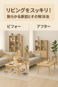 リビングが散らかる原因の多くは、「モノの定位置が決まっていない」「収納スペースが足りない」「使ったあと戻さない習慣」が挙げられます。特に家族全員が使う空間では、誰が使っても分かりやすい収納ルールが大切です。さらに、“つい置きっぱなしにしてしまう場所”が決まっているケースも多く、たとえばソファの上やテーブルの端、テレビ周りなどが散らかりやすいポイントです。人の動線に沿った収納を作ること、そして『使う→戻す』の流れをスムーズにできる環境を整えることが重要です。日々の暮らし方の癖を見直すことが、片付けの第一歩になります。