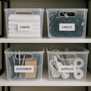 この手順を踏むことで、収納の仕組みが自分にも家族にも分かりやすくなり、「どこに何があるか」が自然に定着します。ラベルはその目印として、整理の継続を支える強力なサポート役になります。