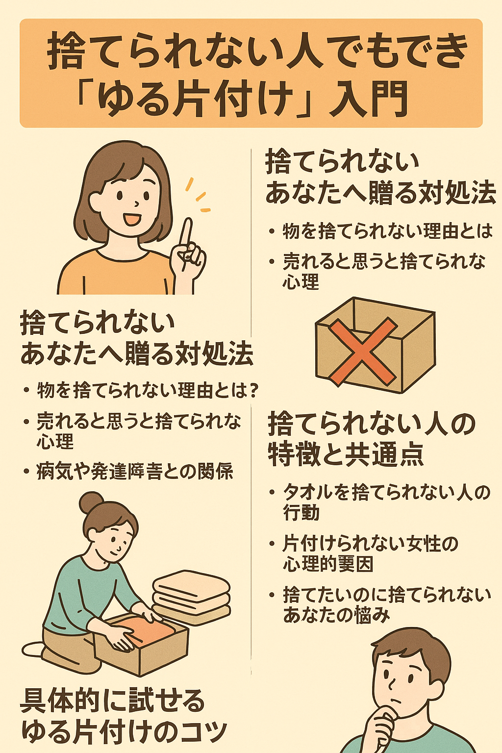 断捨離の基礎知識断捨離とは?その意味と目的断捨離とは、「断=入ってくる不要なものを断つ」「捨=家にある不要なものを捨てる」「離=物への執着から離れる」という考え方から成り立つライフスタイルです。単なる片付けではなく、自分にとって本当に必要な...